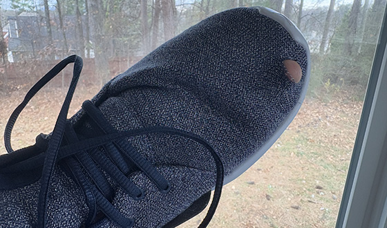 No matter the tech or innovation or special manufacturing methods done by today’s sock makers that claim to be more resistant to wear and promise to last longer than the package of boring ass tube socks you can get at your local Ross for 60% the cost of retail, there is pretty much no pair of socks that my feet are incapable of wearing holes through. Most of the time, it is outer sole of my foot where holes begin because I grew up bowlegged and it’s clear that my weight applies more pressure to the outer parts of my feet, but I’ve had holes form near my heel, of course on the outer part.